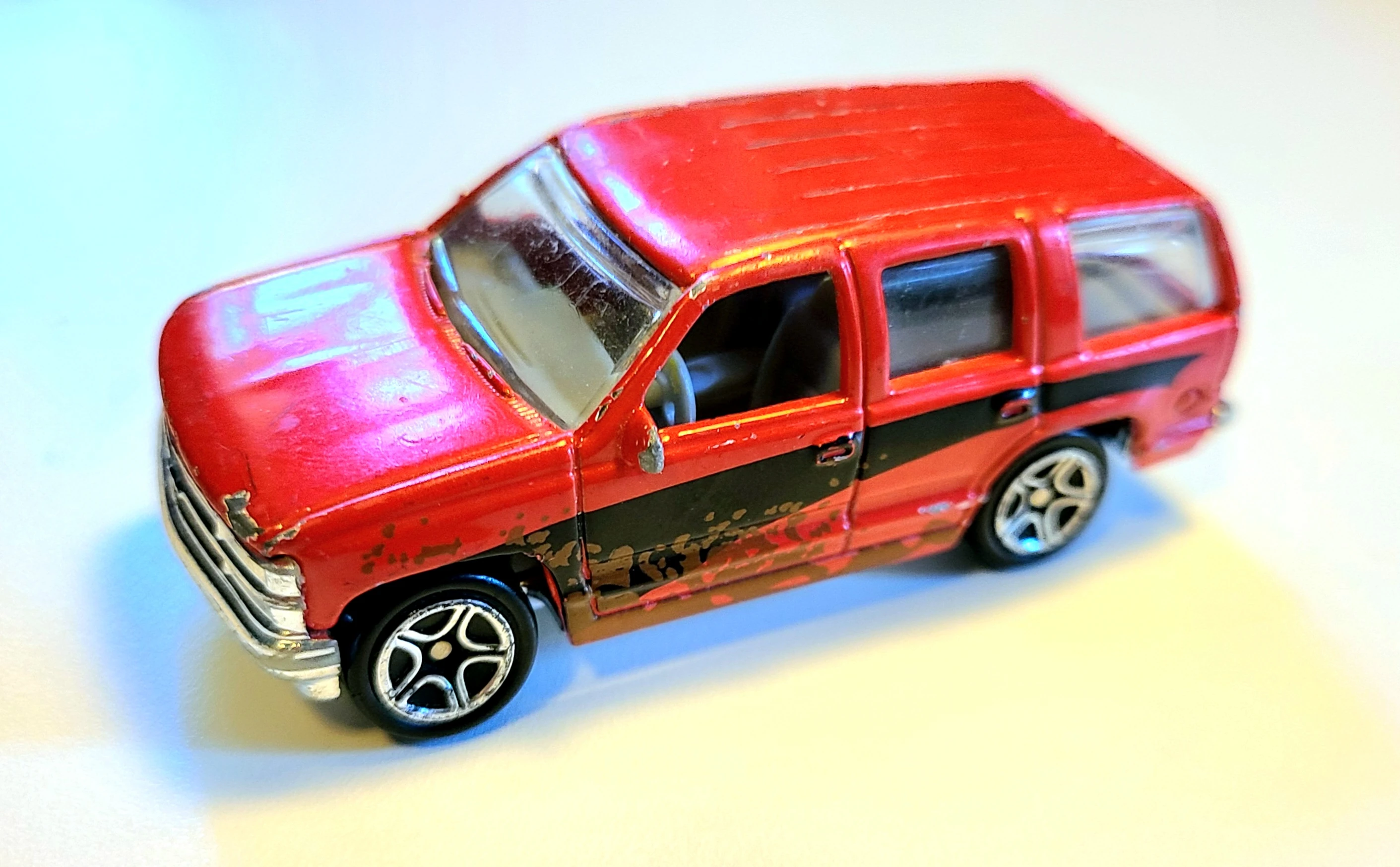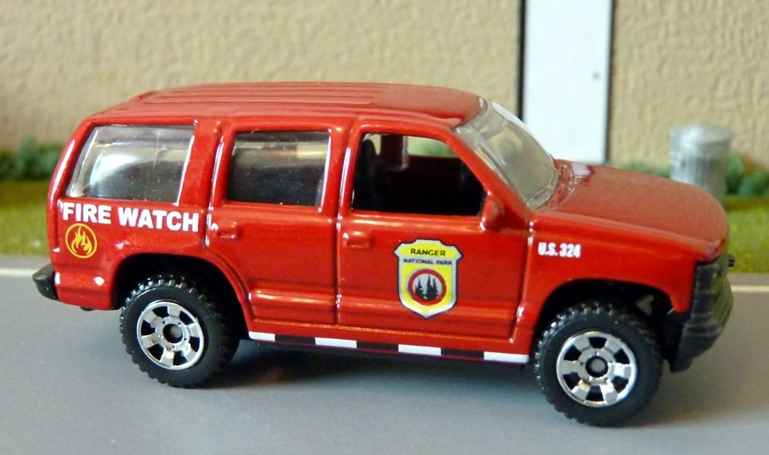 | N/A | 2000 | Matchbox Mountain Playset | Red | Black stripe, mud splatter | Chrome / Plastic | Clear | Tan |