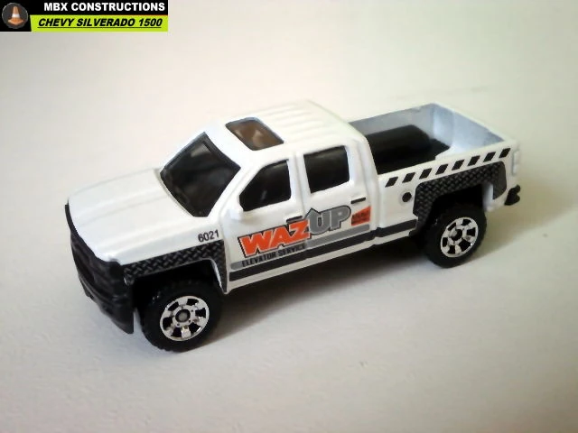 | MB59 | 2016 | 1-125: MBX Construction | Pearl White | Black & silver stripes, Black diamond plate patterns, "WAZUP ELEVATOR SERVICE", 6021 | Black / Plastic | Smoke | Black |