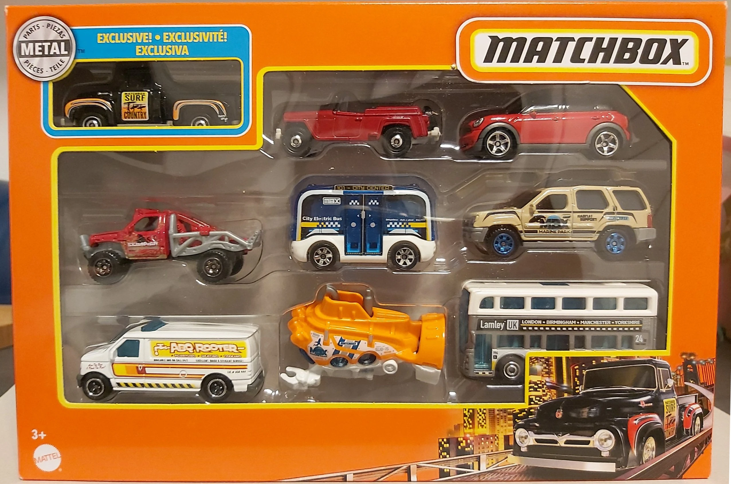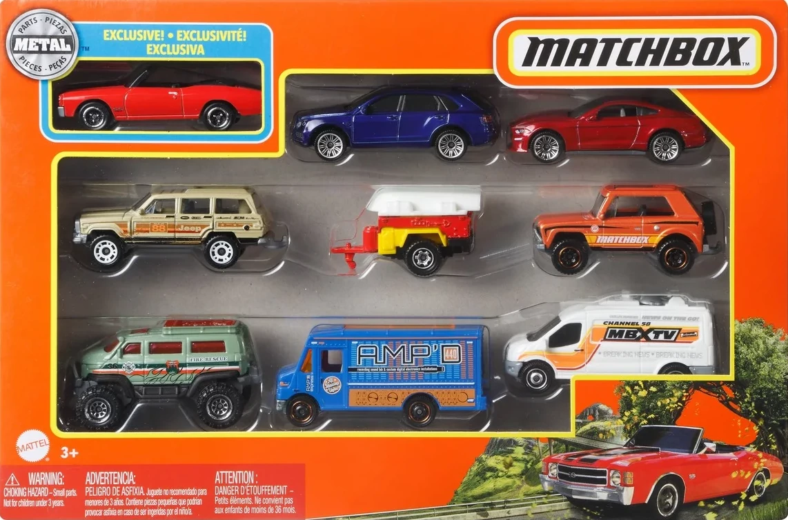 The 2021 9/10 pack exclusive are a mixed set of various Matchbox vehicles with an exclusive model released in 2021 across all retailers as 9 packs (US) or 10 packs (INT).