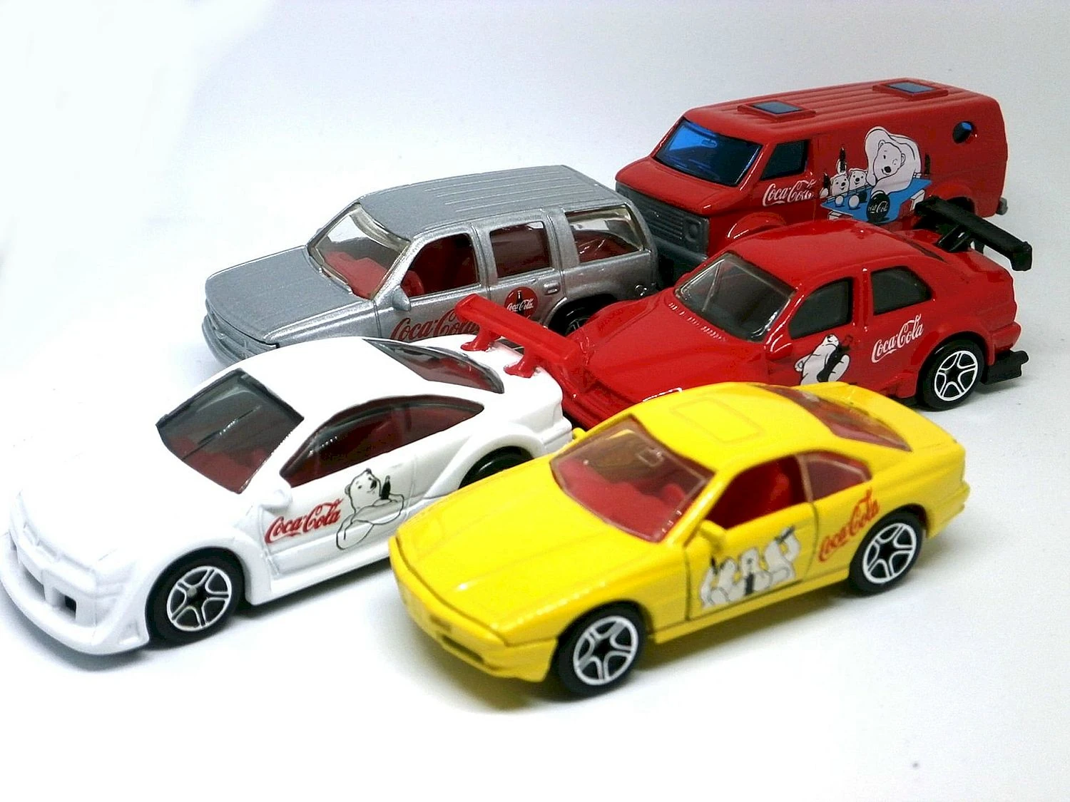The Coca-Cola cars was a series of cars featuring Coca-Cola Graphics released between the 1980s and ended around 2004. Including Lesney RW , 1:18, 1:24, 1:35, 1:43/1:45 scales Coca-Cola in Premiere Collectibles , Mainline & Sub sets (Series)