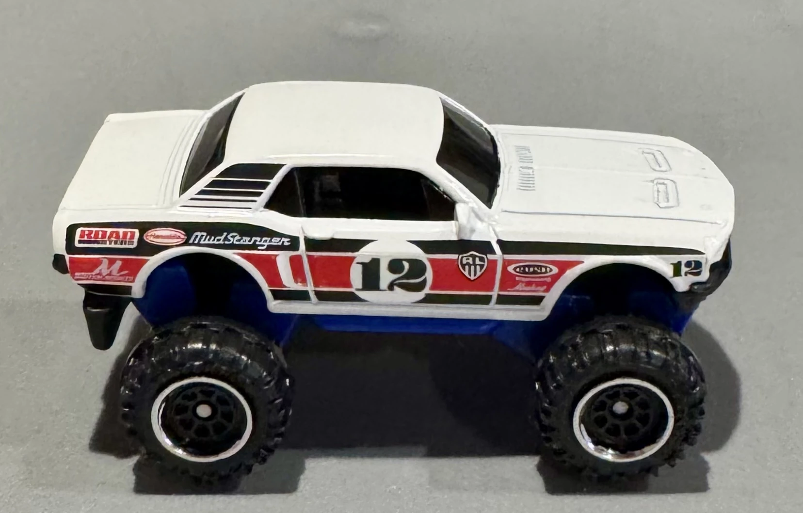 The Custom '68 Mustang Mudstanger is a heavily reworked version of the original 2011 '68 Ford Mustang GT CS casting with custom off road wheels and chassis.