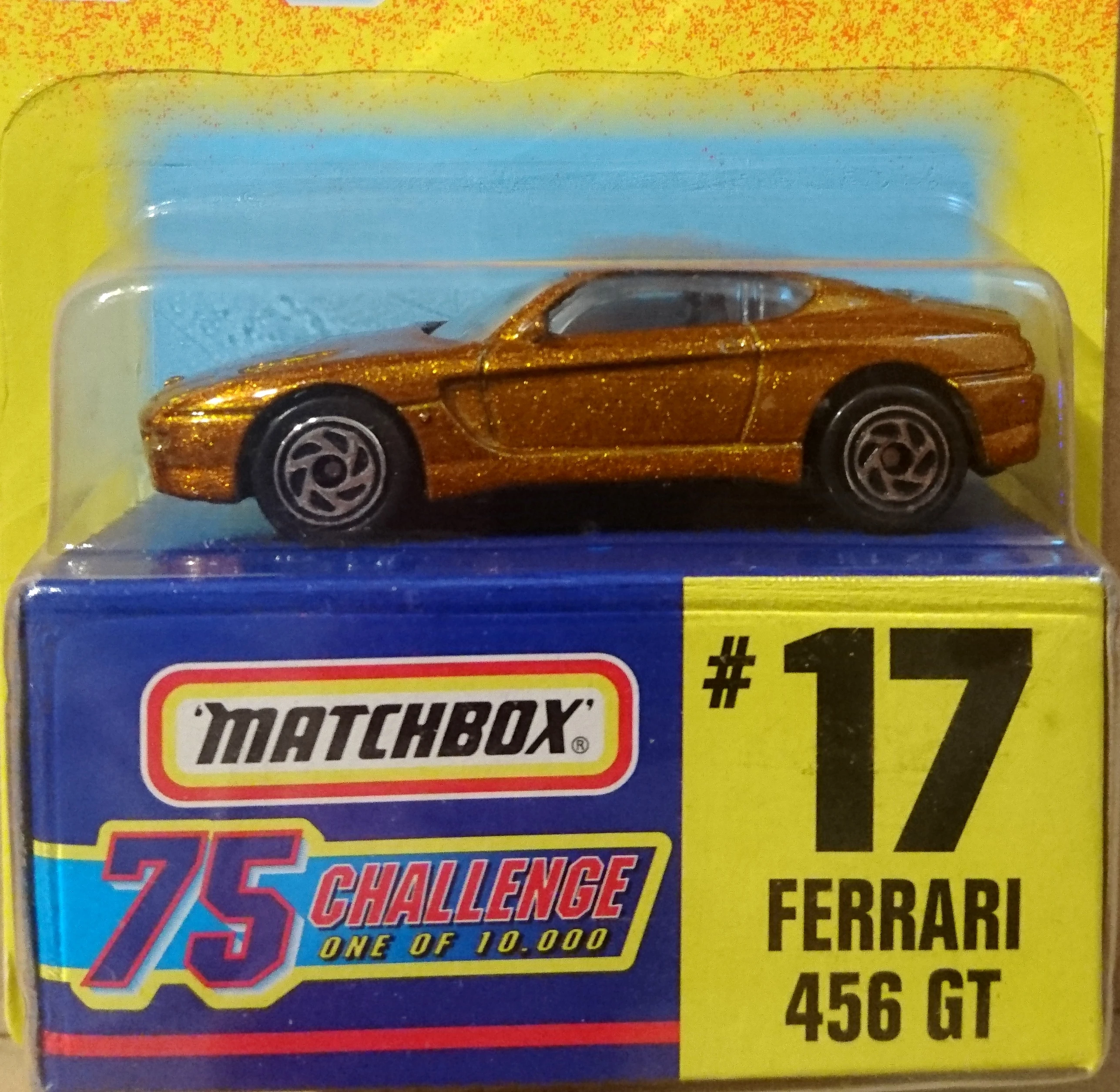 | MB17 (USA) MB41 (ROW) | 1994 | 1-75 | Metalflake Blue | Ferrari logo, 456 GT | Black / Plastic | Clear | Tan |
