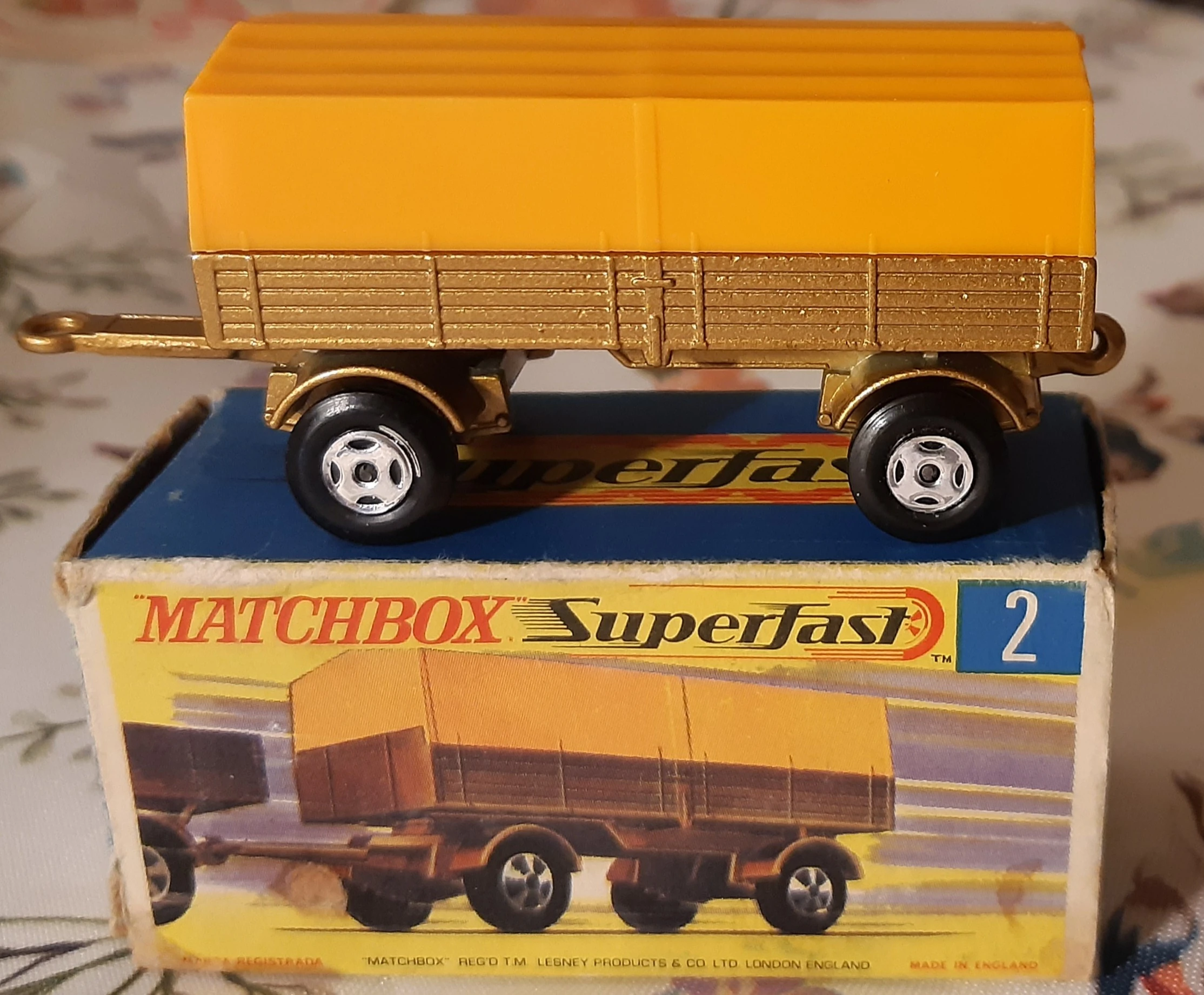- ↑ 2.0 2.1 Matchbox Superfast MB2-d Mercedes Trailer, www.vintagebritishdiecasts.co.uk Retrieved 30 July 2018