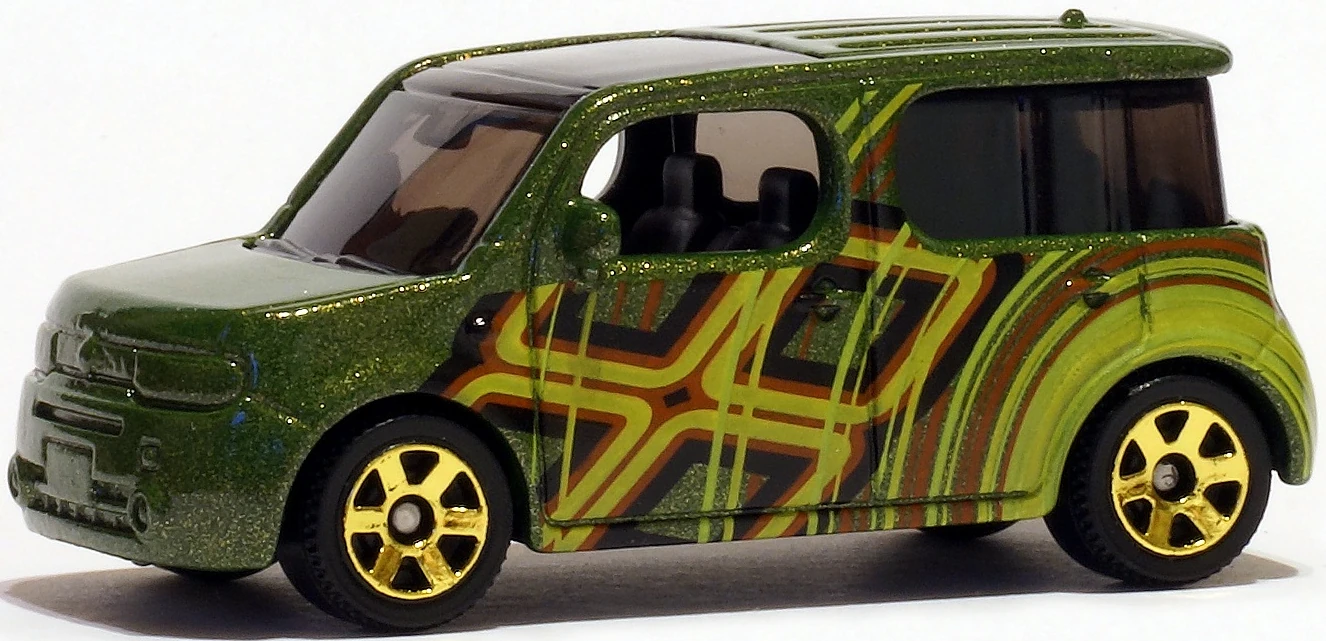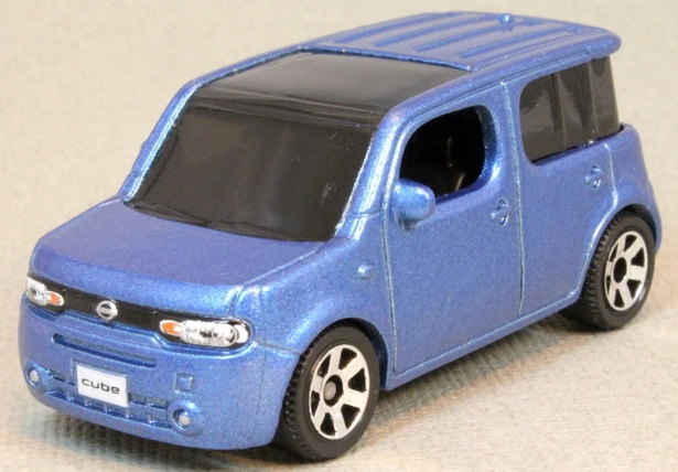 This casting is based on a version of the 2008-2019 Z12-code 3rd generation Nissan Cube for right-hand-drive markets such as Japan or the UK. Not only is the steering wheel on the right side, but the rear window curves to wrap around on the left, which is reversed on left-hand-drive models.