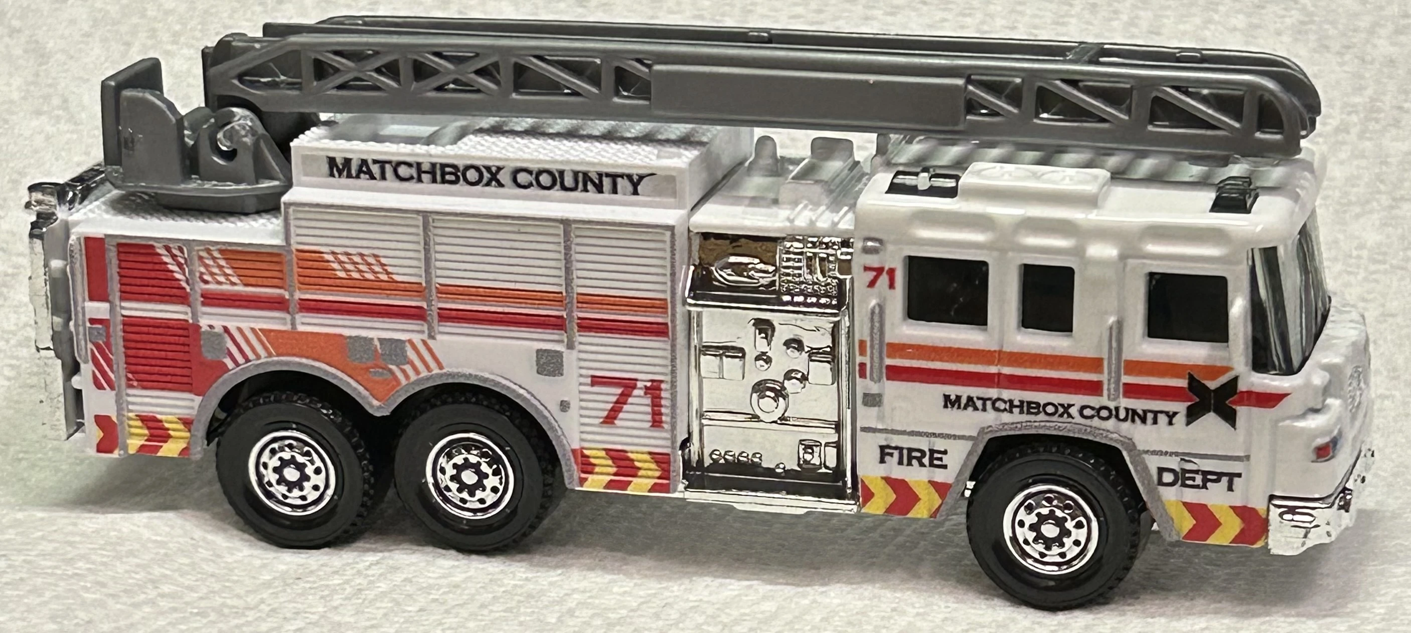 | 2024 | Working Rigs | Red, White, Orange and yellow | Matchbox County, 71, Fire Dept | Chrome / Plastic | Smoke | Black |