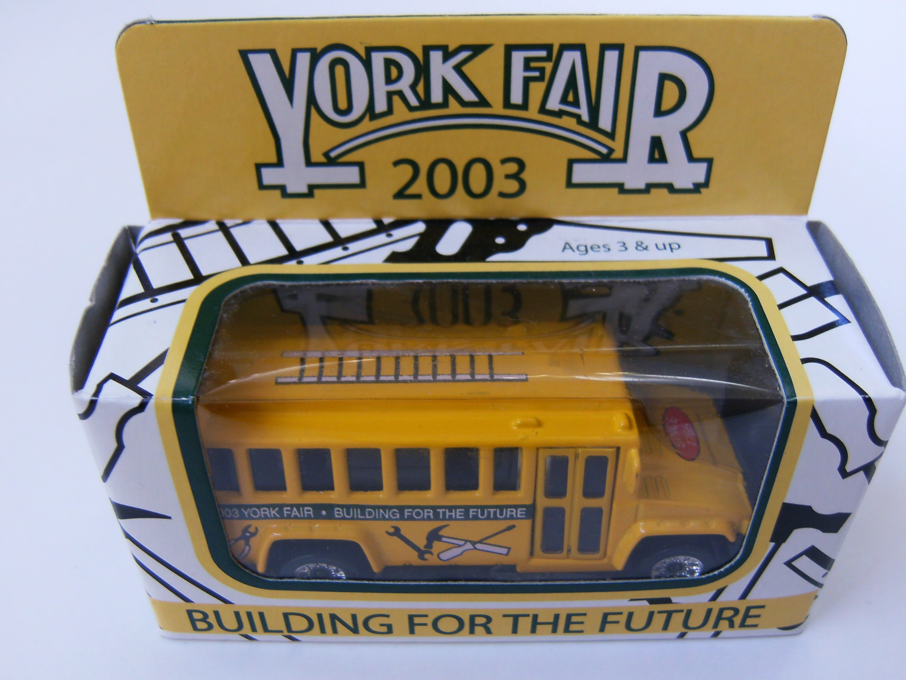 | N/A | 2003 | Promotional | Yellow | "2003 YORK FAIR - BUILDING FOR THE FUTURE", Red oval on hood, Black tools | Black / Plastic | Clear | Green |