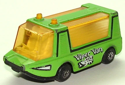 Stretcha Fetcha is a fantasy ambulance, released during the 1970s. It features a greenhouse-like body and an opening rear tailgate. In 1980 as part of the ten Limited Edition Models, the casting was issued in green, with yellow windows, as the Viper Van.
