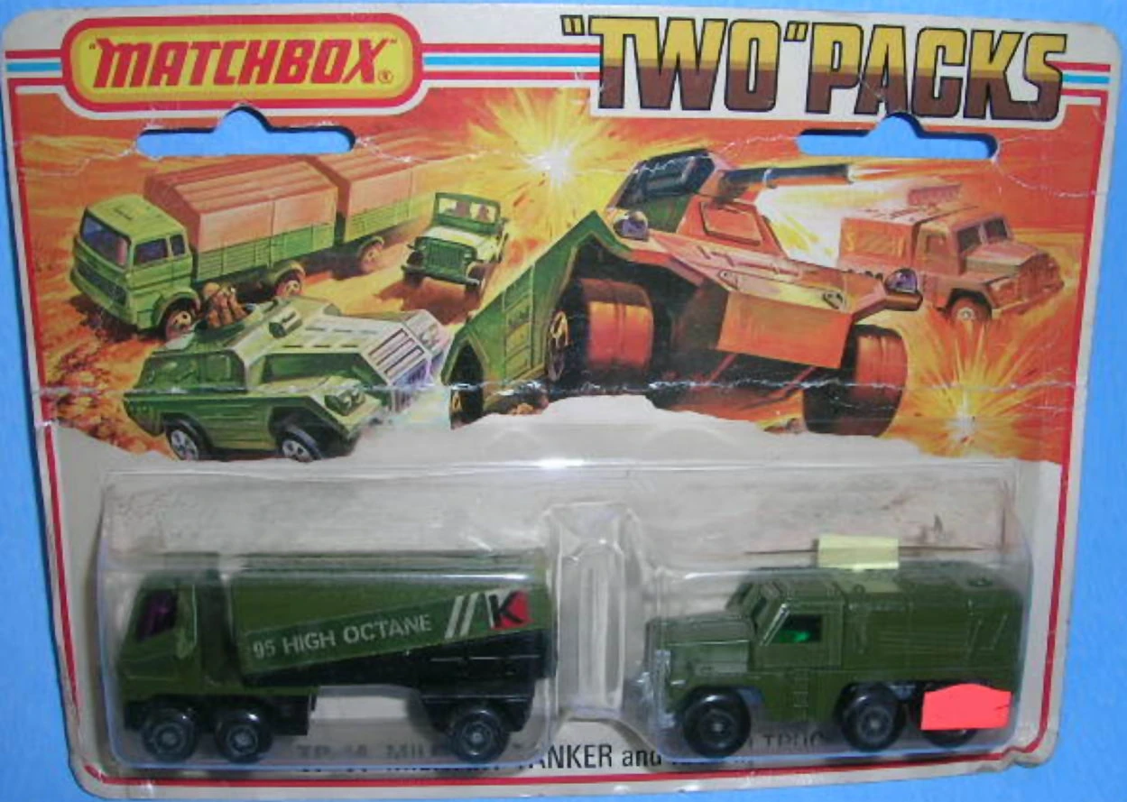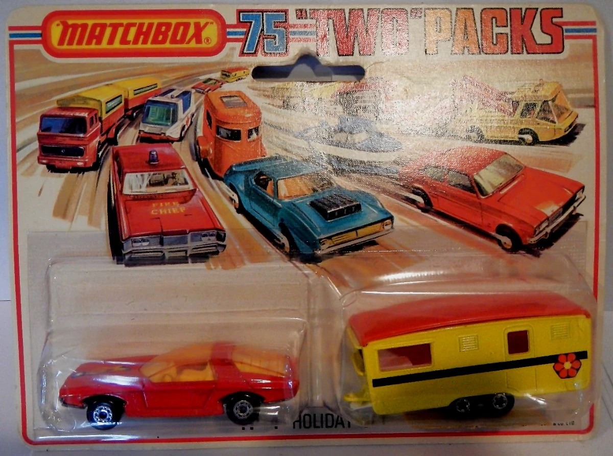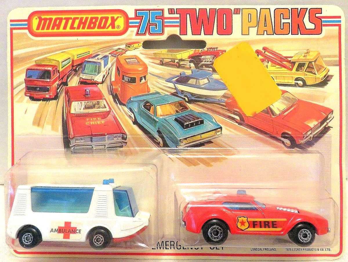 - Matchbox Two Packs (stylized as "Two" Packs) originated in 1976. They featured two vehicles in a single box or blister pack. Some vehicles were the same as those then available in the 1-75 range, while others were special editions. Once the 1-75 range split into INT and USA versions, "Two" Packs sometimes featured vehicles from the other line, e.g. an INT vehicle in the USA market. Sets were numbered with a TP- prefix under all series names.