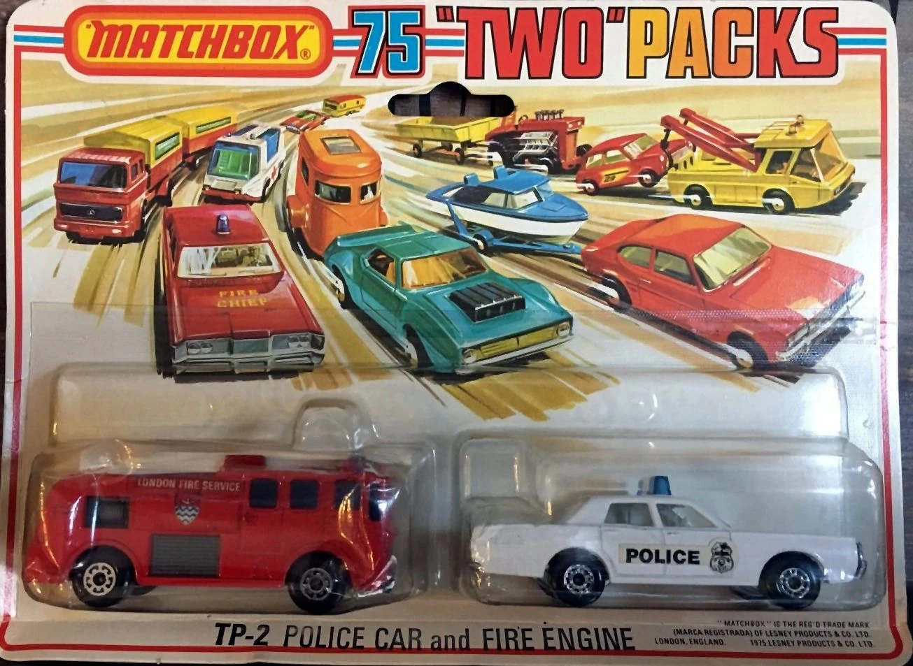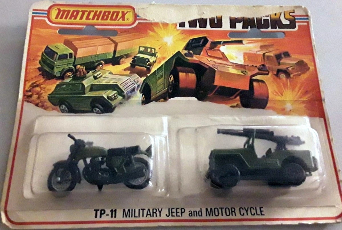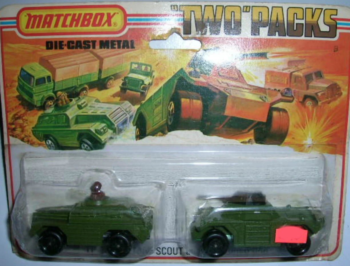 - Matchbox Two Packs (stylized as "Two" Packs) originated in 1976. They featured two vehicles in a single box or blister pack. Some vehicles were the same as those then available in the 1-75 range, while others were special editions. Once the 1-75 range split into INT and USA versions, "Two" Packs sometimes featured vehicles from the other line, e.g. an INT vehicle in the USA market. Sets were numbered with a TP- prefix under all series names.