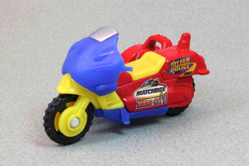 | MB547 | Cycle with Sidecar | 2003 | Toy Fair Exclusive | Multi | Matchbox Hero City Toy Fair police 2003 | Yellow | Blue | Yellow | China |