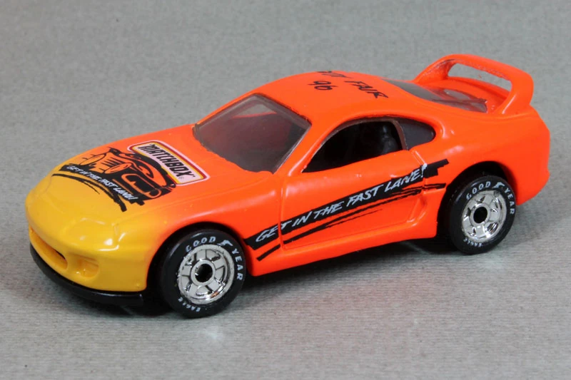 | MB271 | Toyota Supra Turbo | 1996 | Toy Fair Exclusive | Orange | "TOY FAIR 96'" on the roof "MATCHBOX" on hood, "GET IN THE FAST LANE!" on hood and sides. | Black | Clear | Black |