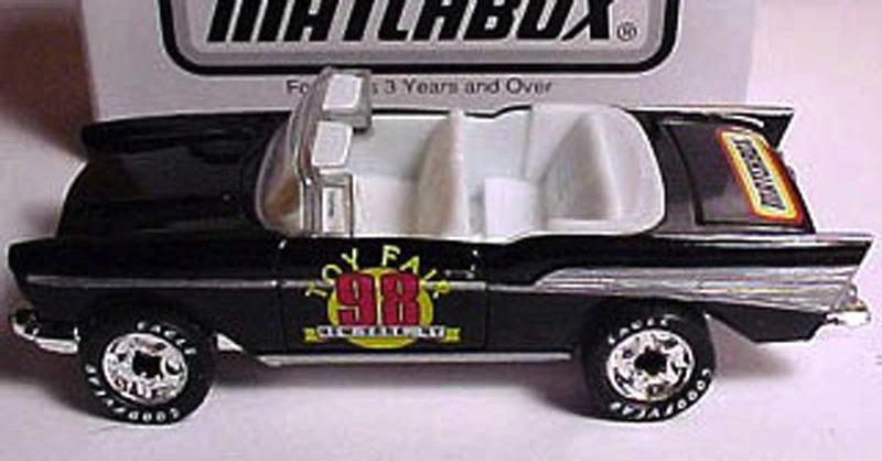 | MB320 | 1957 Chevrolet | 1998 | Toy Fair Exclusive | Black | Toy Fair 98 and detailed trim | Chrome | Clear | White |