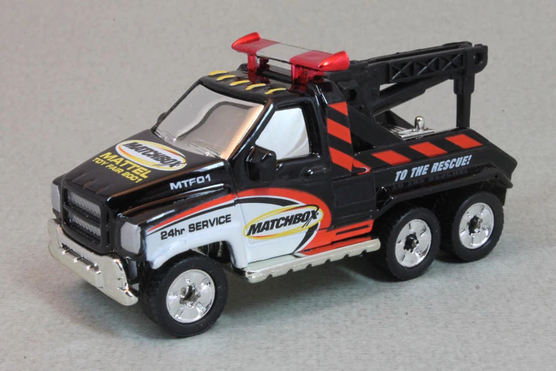 | MB481 | Wrecker Truck | 2001 | Toy Fair Exclusive | Black | Matchbox 24hr service Toy fair 2001 | Chrome | Chrome | N/A | ![]() No lettering |