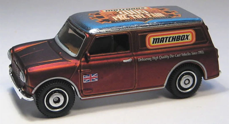 | MB713 | Austin Mini Van - 1965 | 2009 | Pre Toy Fair Exclusive | Metallic Brown | 2009 Pre Toy Fair | Chrome | Black Tint | Black |