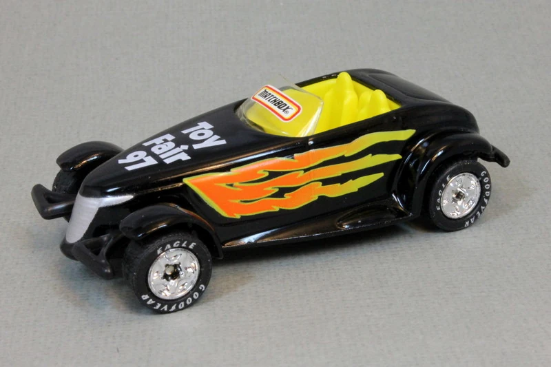 | MB280 | Plymouth Prowler | 1997 | Toy Fair Exclusive | Black | Toy Fair 97 On the hood, Flames along the side | Black | Clear | Yellow |