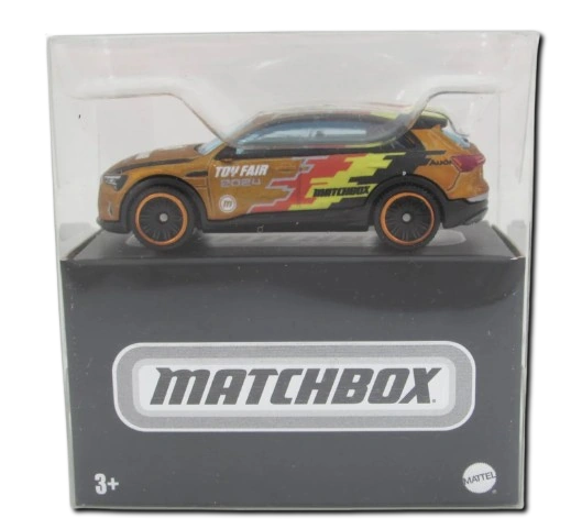 | MB1299 | Audi e-tron | 2024 | Toy Fair Exclusive | Metallic Copper | Detailed Trim; Red, Black and Yellow Pixelated Stripings. Toy Fair 2024, Matchbox Logos | Black | Blue Tint | Black | Thailand |