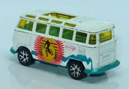 | MB12 | 2001 | 1-75: Highway Heroes 2/5 | White, Teal & Dark Blue | VW Transporter; Orange, White and Teal stripes | Chrome / Plastic | Clear | Fluorescent Orange |